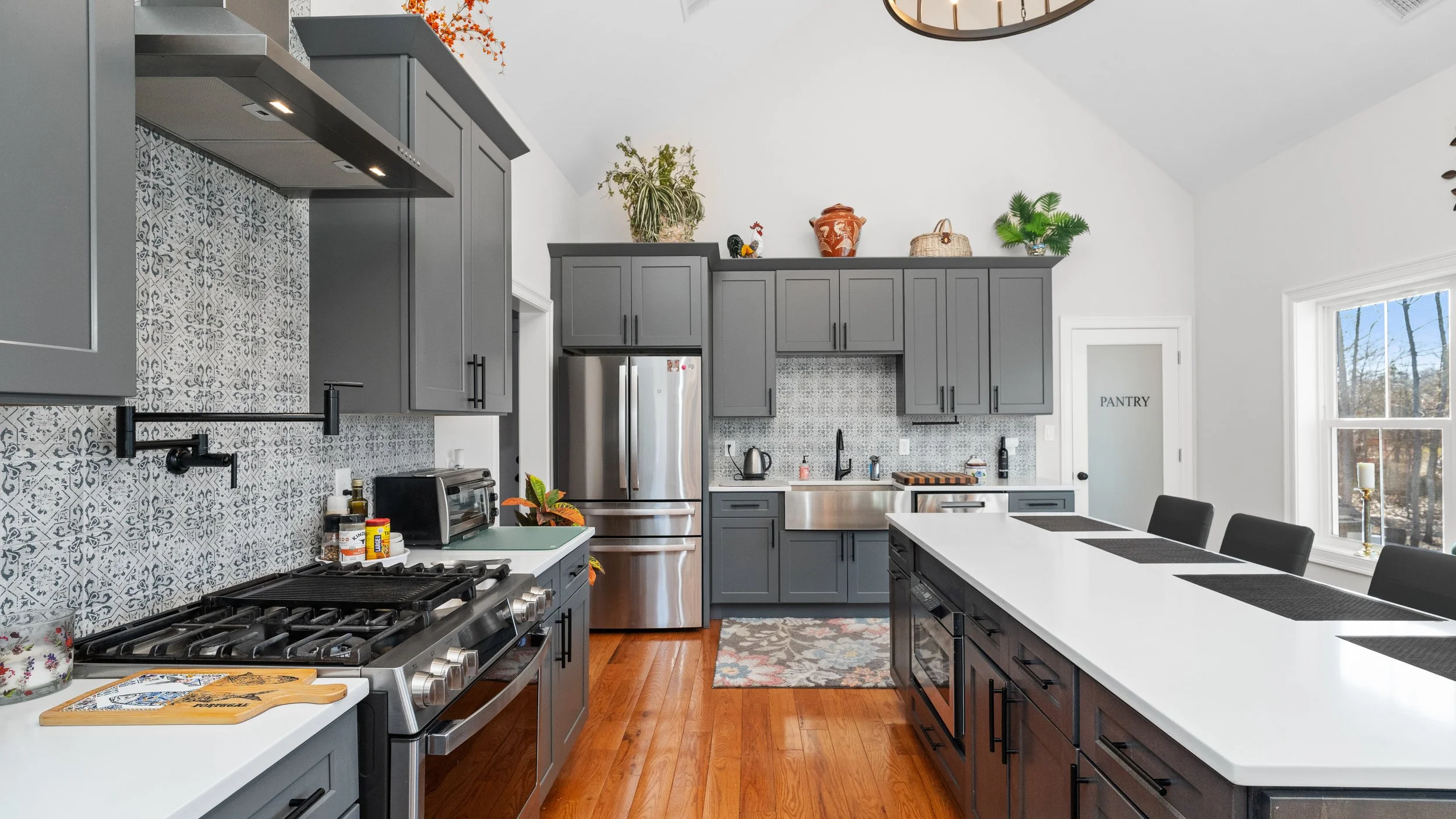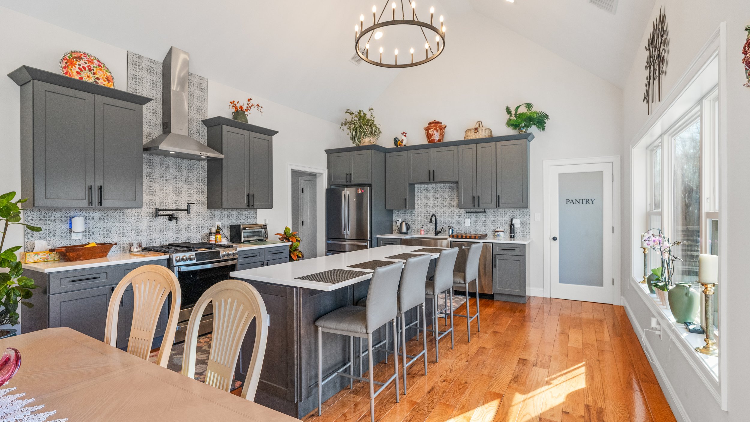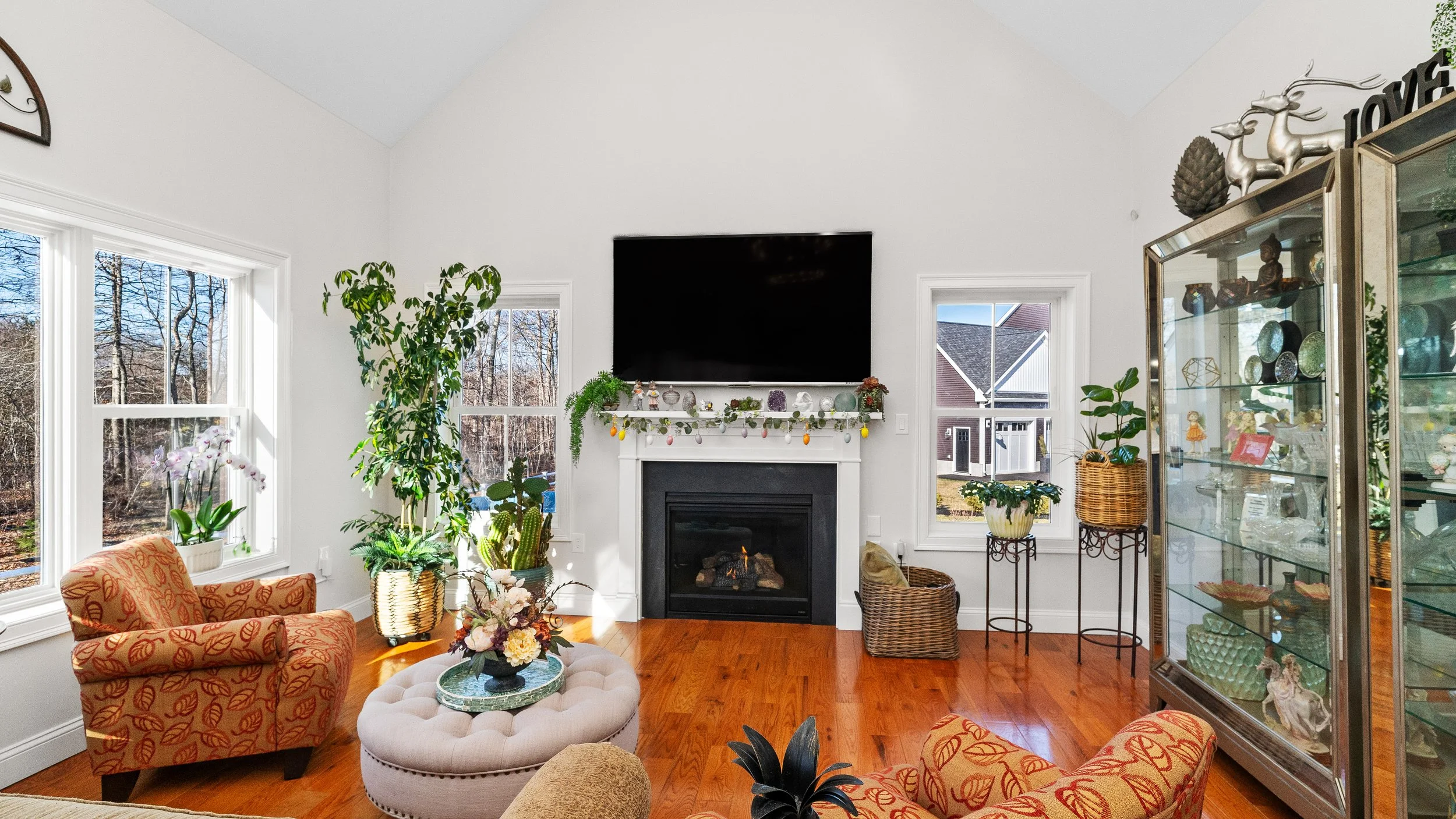 Cathedral ceilings create a bright, welcoming atmosphere in the main living areas.